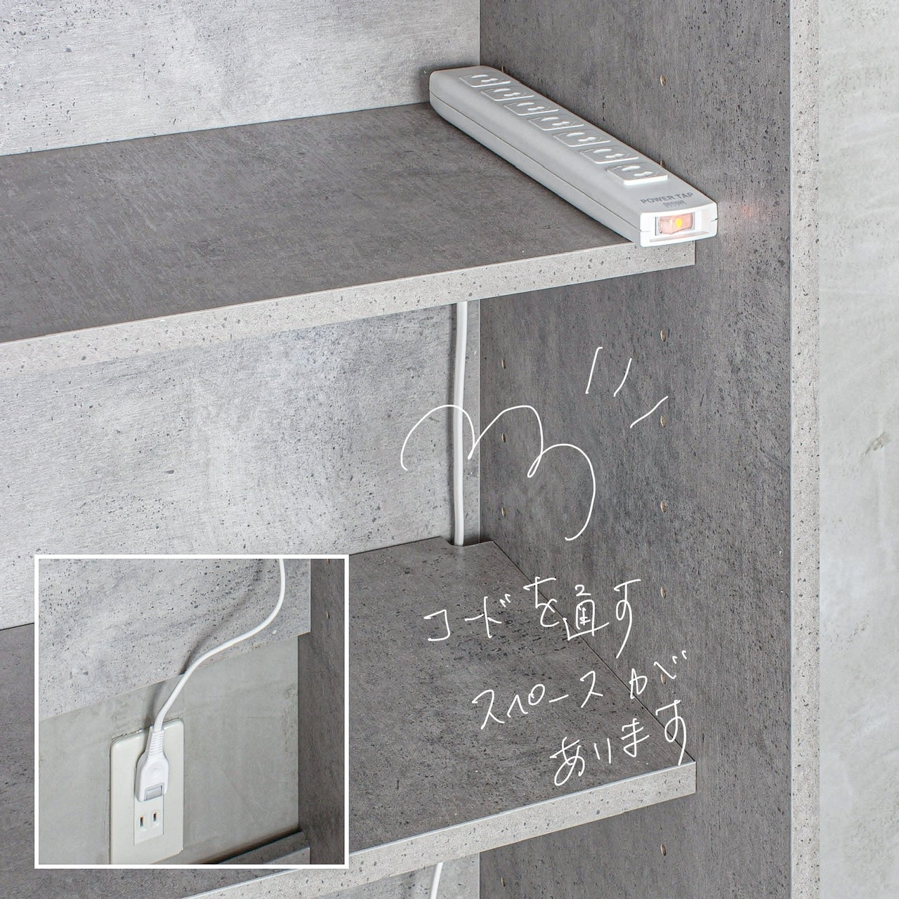 ・棚:可動棚3段(棚ダボ、配線開口付)、フラップアップ棚(最下段)
