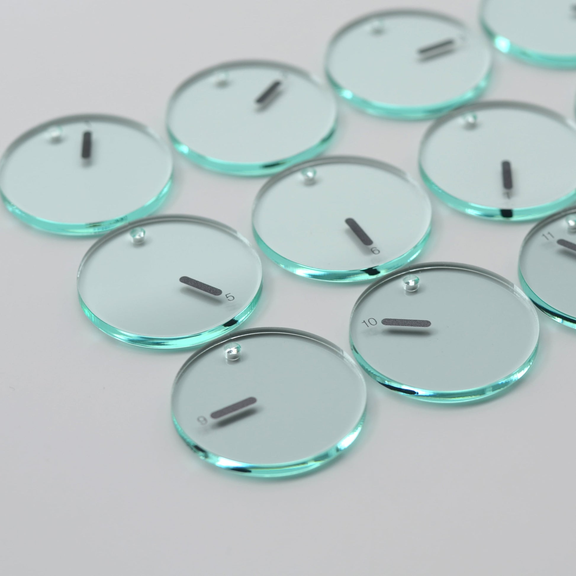 時計の文字盤モチーフで、直感的に針の位置で番号が分かるようなデザインにしています。